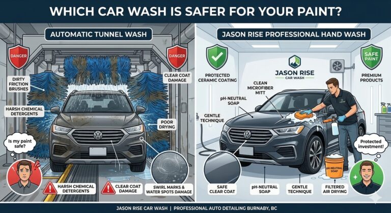 Jason Rise Car Wash Car Care Knowledge Base Hand Car Wash vs Automatic Car Wash – What’s Safer for Paint? Keeping your car clean in Vancouver is a constant challenge due to frequent rain, road grime, and winter chemicals. For…